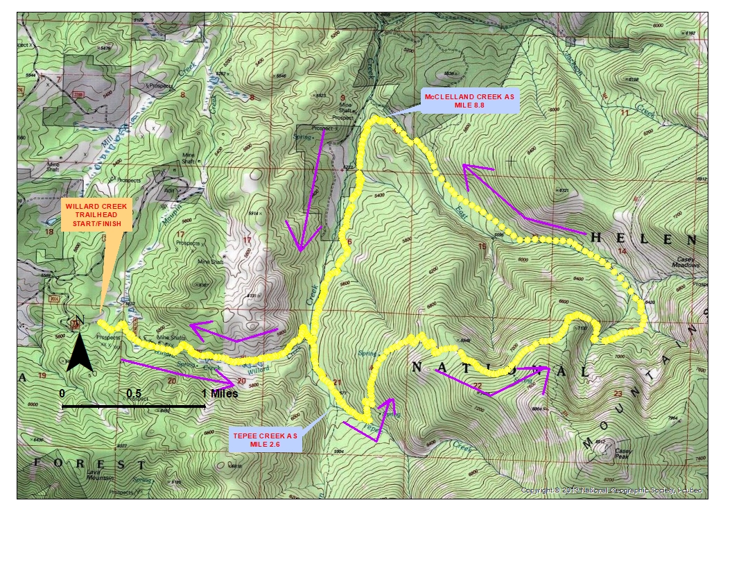 The race starts and finishes at the Willard Creek Trailhead at the end of Forest Service Road 4014. Primitive camping is available. There are no amenities other than porta-potties, which will be delivered sometime the day before the race.